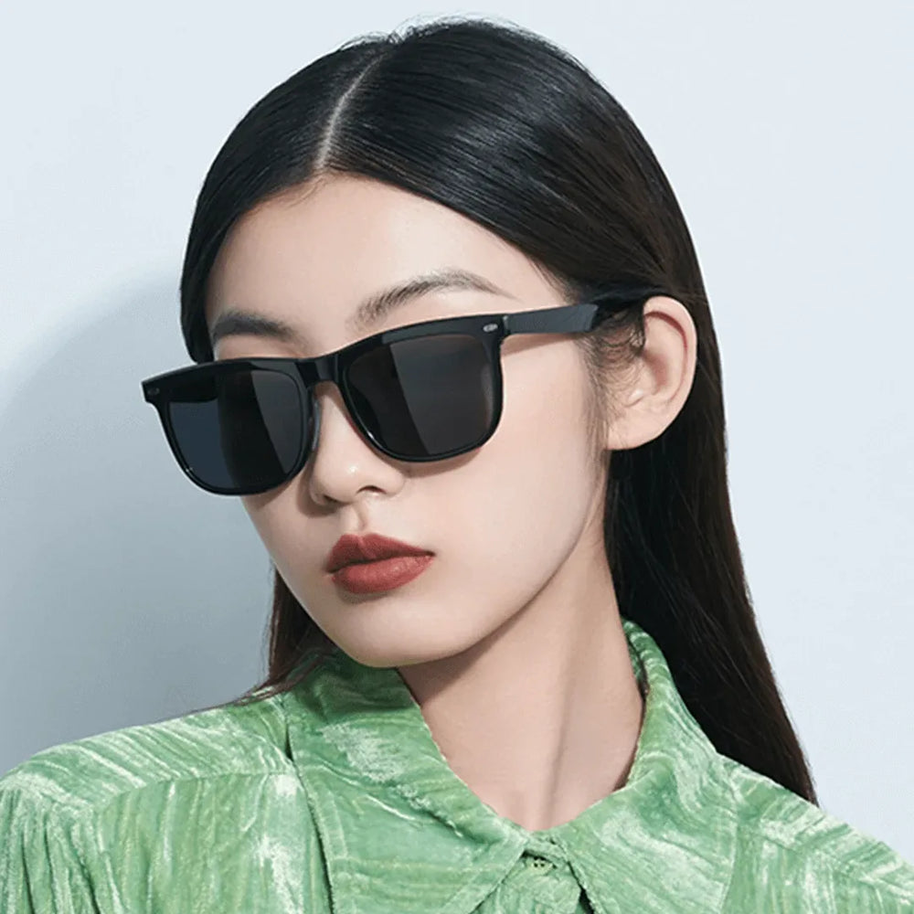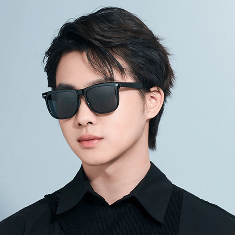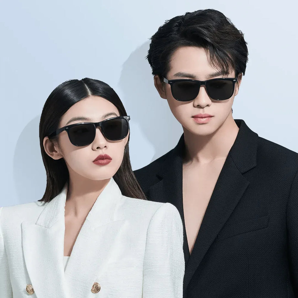 A Xiaomi Square Sunglasses stílusos, szögletes kerete divatos uniszex megjelenést kölcsönöz a letisztult és egyszerű vonalak segítségével. A TR90 polimerből készült 26 g-os könnyű kialakítás egyenletes nyomást biztosít, csökkentve a fülre és az orra nehezedő terhelést a kényelmes viselet érdekében.